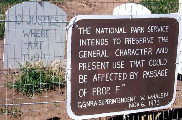 But, You Promised!"We want to state clearly that we have no intent to eliminate . . . off-leash dog walking,'' O'Neill said. "All plans either maintain or expand off-leash dog walking. Under any future scenario, more generous areas of the Presidio's northern waterfront will be available to dogs.'' -